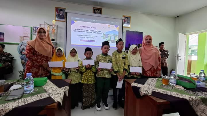 Sleman – Dharma Wanita Persatuan (DWP) Kankemenag Kabupaten tasyarufkan Beasiswa kepada 17 siswa madrasah yang berada di sekitar Kapanewon Pakem dan Cangkringan Kabupaten Sleman. Beasiswa diberikan langsung oleh Ketua DWP Kankemenag Sleman Sri Wulandari, didampingi Sekretaris DWP Fatikhatul Qoriah Sangaji kepada para siswa-siswa MIS AL Qodir, MTs Negeri 7 Sleman dan MAN 4 Sleman. Pentasyarufan dilaksanakan pada Rabu (23/7/2025) di Ruang Ketrampilan Desain Komunikasi Visual (DKV) MAN 4 Sleman.