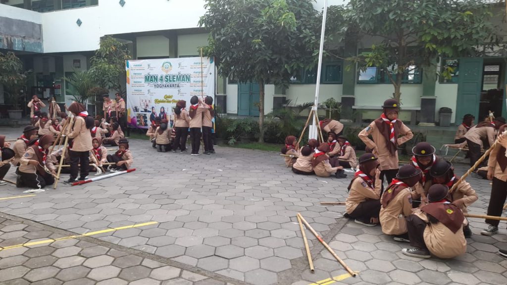 Sleman (MAN 4 Sleman) – Salah satu ketrampilan wajib di MAN 4 Sleman adalah kepramukaan. Kegiatan tersebut diselenggarakan setiap hari Rabu mulai dari jam 14.30 sampai dengan 14.00. kegiatan mayoritas dilaksanakan out door, namun juga in door, tergantung pada situasi dan kondisi. “Kegiatan Pramuka sebagai bagian pendidikan karakter, membangun semangat cinta tanah air, kemandirian, kreativitas hingga berinovasi. Banyak manfaat yang diperoleh siswa bila mengikuti kegiatan ini secara sungguh-sungguh sepenuh hati,” pesan Drs Ahmad Arif Makruf,M.A.,M.Si Kepala MAN 4 Sleman di sela kegiatan Rabu (5/2/2025).