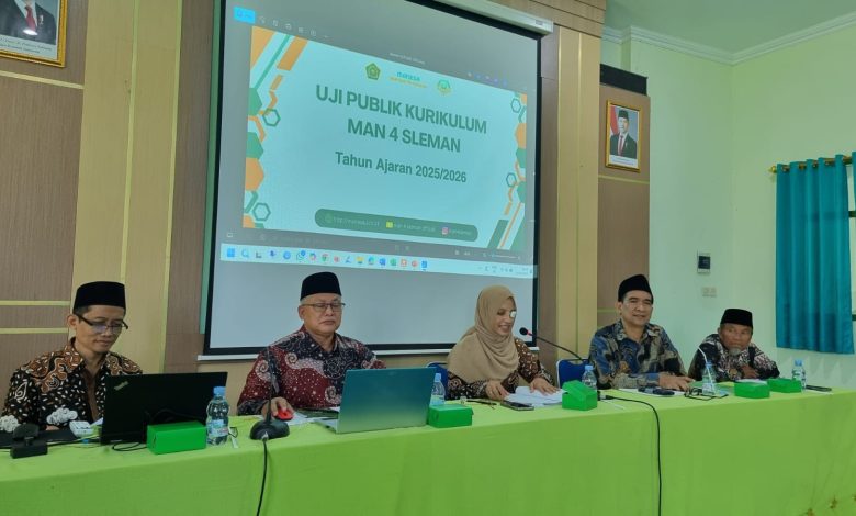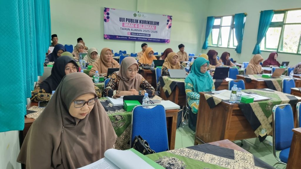 Sleman )(MAN 4 Sleman)–– MAN 4 Sleman menyelenggarakan Uji Publik Kurikulum Tahun Ajaran 2025/2026, pada Rabu(3/09/2025), di Aula Madrasah lantai 2. Kegiatan ini dihadiri oleh berbagai pihak, antara lain Subkor Kurikulum dan Kesiswaan Kanwil Kemenag DIY, Hj. Anita Isdarmini, S.Pd., M.Hum., perwakilan Pokjawas Madrasah Drs. H. Daryono, Komite Madrasah, segenap guru, pegawai, serta siswa MAN 4 Sleman. Kehadiran para pemangku kepentingan tersebut semakin menguatkan komitmen bersama dalam penyempurnaan kurikulum madrasah.