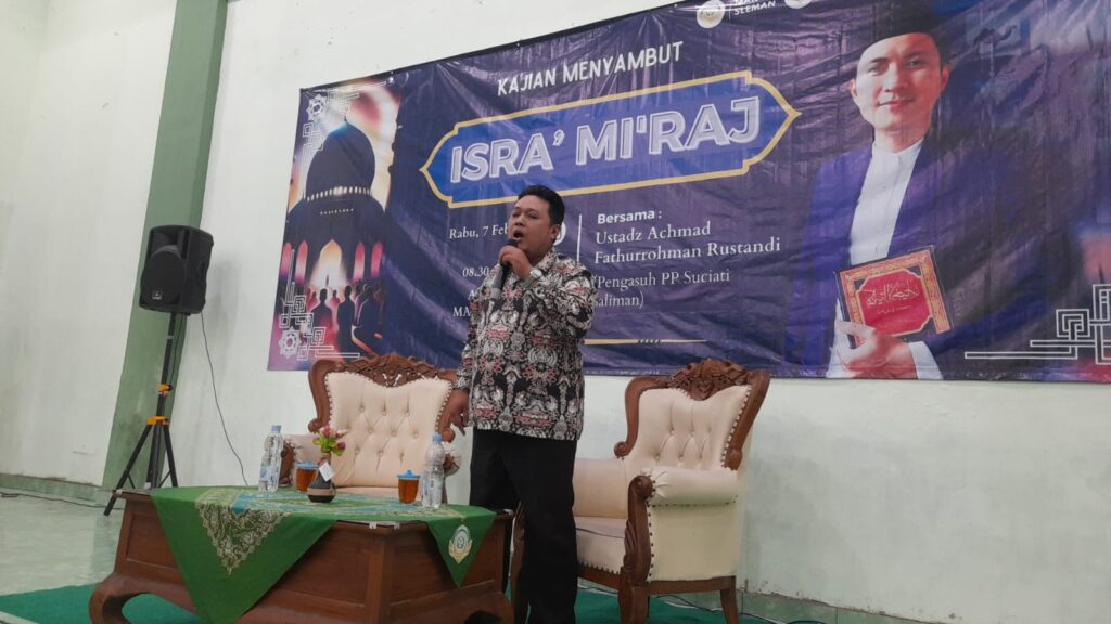 Penceramah yang dihadirkan, pengasuh PP Suciati Saliman, Ustadz Achmad Fathurrohman Rustandi, memberikan penekanan yang kuat tentang pentingnya sholat dalam kehidupan seorang muslim. “Isra’ merupakan perjalanan Nabi Muhammad SAW dari Masjidil Haram di Makkah ke Masjidil Aqsa di Palestina dalam satu malam. Miraj adalah kelanjutan dari perjalanan Rasulullah dari Masjidil Aqsa menuju langit ketujuh hingga Sidratul Muntaha untuk menerima perintah sholat lima waktu,” jelasnya.
