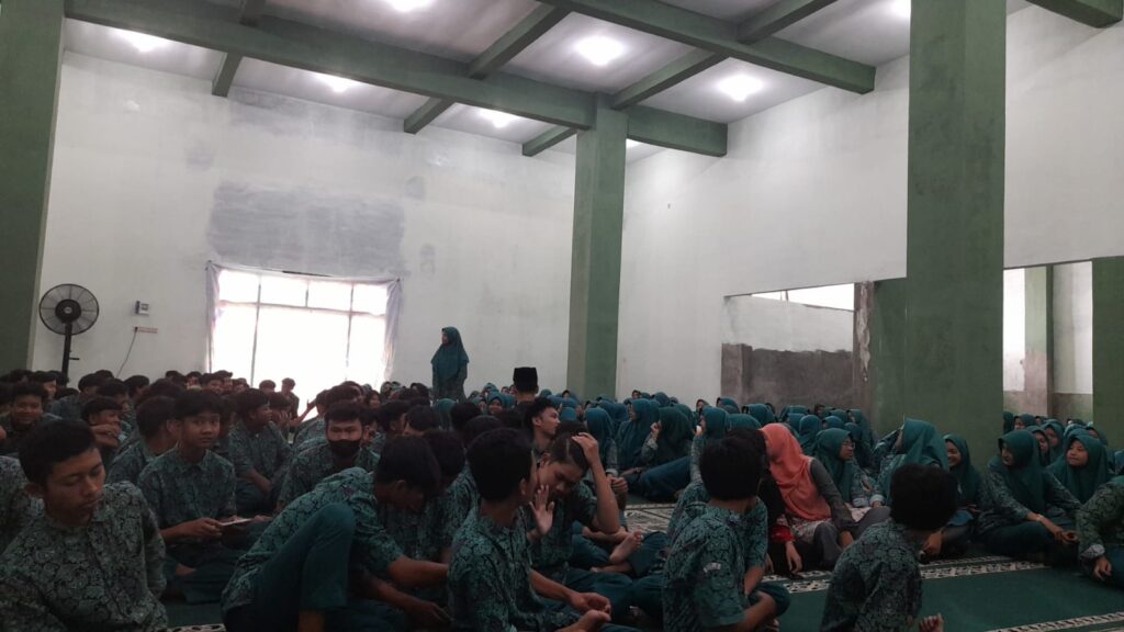 Sleman (MAN 4 Sleman) – Aula utama MAN 4 Sleman kini mulai difungsikan setelah beberapa waktu tidak bisa diakses karena adanya pembangunan masjid An-Najah. Rabu (7/2/2024) pengajian menyambut peringatan Isra’ Mi’raj digelar di aula tersebut. Acara yang diikuti oleh seluruh siswa kelas X, XI, dan XII ini menjadi momen berharga untuk menanamkan karakter islami kapada para siswa.