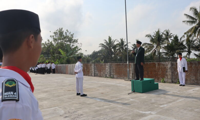 Sleman (MAN 4 Sleman) –Kepala Madrasah Aliyah Negeri (MAN) 4 Sleman, Drs. Ahmad Arif Makruf, MA., M.Si., mengajak seluruh civitas akademika untuk mengutamakan konsumsi makanan sehat dan bergizi, serta menghindari makanan yang mengandung pewarna dan zat berbahaya. Imbauan ini disampaikan dalam upacara bendera yang berlangsung di lapangan upacara madrasah pada Senin (15/10/2024).
