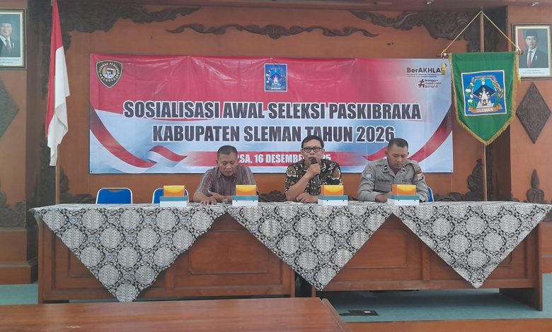 Sleman – Badan Kesatuan Bangsa dan Politik (Kesbangpol) Kabupaten Sleman menyelenggarakan sosialisasi seleksi awal calon Pasukan Pengibar Bendera Pusaka (Paskibraka). “Kami yakin setiap sekolah memiliki Tonti, lakukan persiapan terbaik untuk mengikuti seleksi. TWK atau tes wawasan kebangsaan memiliki peran penting pada seleksi penerimaan,” ujar Kepala Bidang Bina Idiologi Wawasan Kebangsaan Immawan Nur Syaifudin saat melakukan sosialisasi penerimaan dan seleksi awal calon Paskibraka tahun 2026, Selasa (16/12/2025) di Gedung Unit I Pemda Sleman.