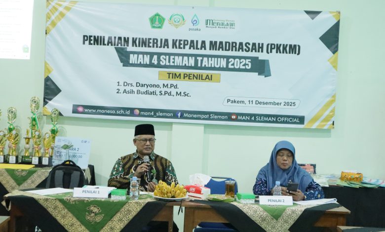 Sleman (MAN 4 Sleman) — MAN 4 Sleman melaksanakan Penilaian Kinerja Kepala Madrasah (PKKM) Tahun 2025 sebagai upaya memperkuat tata kelola dan meningkatkan mutu layanan pendidikan. Kegiatan berlangsung tertib dan penuh kesungguhan di Aula Madrasah lantai 2 pada Kamis pagi (11/12/2025).