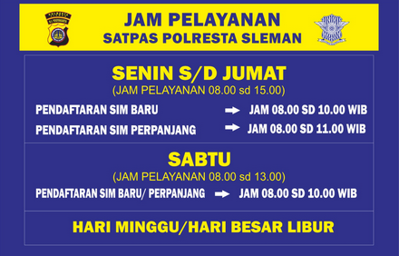 Kita ambil lokasi Satpas di Polres Sleman. Lihat jam kerja ya.