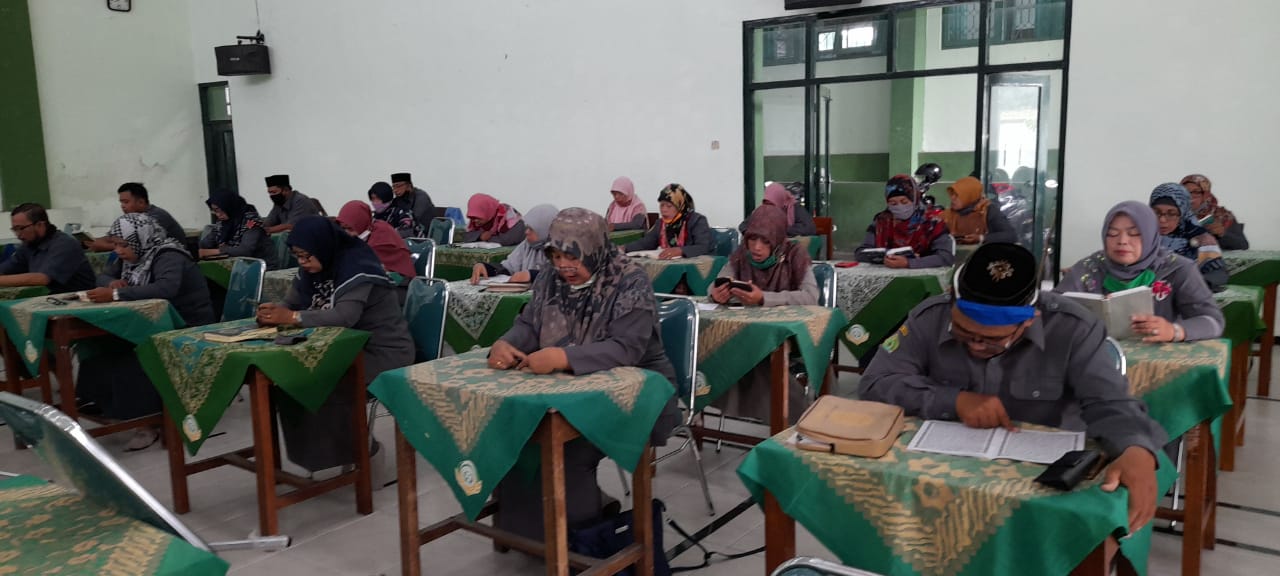 Sleman (MAN 4 Sleman) – Gema tilawatul Qurán menggema di aula MAN 4 Sleman saat guru pegawai secara aktif membaca kalam ilahi mulai juz pertama hingga keduapuluh sembilan. Setiap guru mendapat setengah hingga satu juz hingga semua dibaca. Dalam kesempatan tersebut seluruh warga madrasah dapat mengikuti pembukaan hingga doá penutup. Peserta juga mengikuti informasi dari Drs. H Edhi Gunawan,M.Pd.I kepala kantor wilayah Kementerian Agama Daerah Istimewa Yogyakarta. Muqodaman digelar Senin (23/11/2020) sebagai rangkaian peringatan Hari Guru Nasional (HGN).